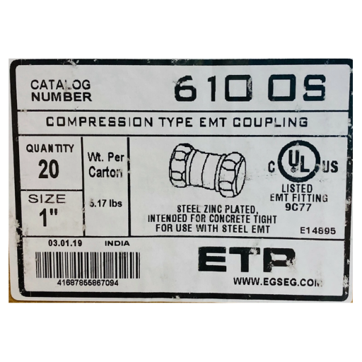 Introducing the EMT Compression Coupling Connector for electrical conduits, a reliable solution for secure electrical installations. Designed for conduit size 1″, the 6100 S model ensures excellence in connectivity and durability, making it an essential component for electricians and DIY enthusiasts alike.
