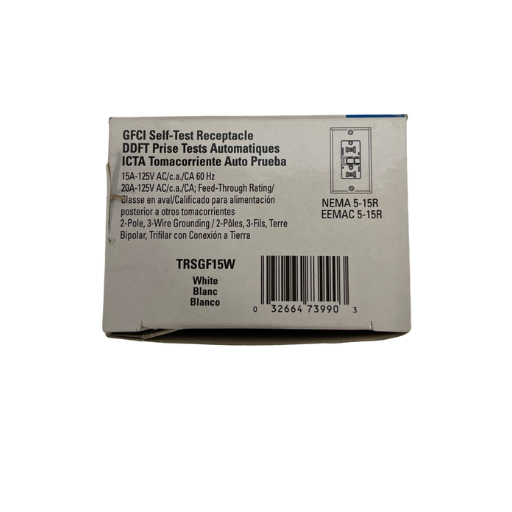 Eaton TRSGF15 W Receptacle offers reliable safety with tamper-resistant shutters, preventing accidental insertion. Designed for residential use, it supports 15A current and 125V voltage, ensuring optimal performance. Its sleek white finish enhances any decor, while robust construction guarantees long-lasting durability. Perfect for protecting children and maintaining electrical safety.